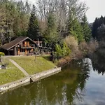 Situé à moins de 6 km du Musée du Verre et du Cristal, Chalet Du Schlossthal - Etang Lemberg dispose d'une terrasse avec une vue sur le lac.